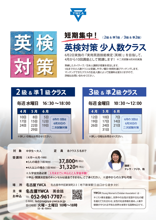 6月2日の『実用英語技能検定(英検)』を目指して、4月から10回講座として開講します!