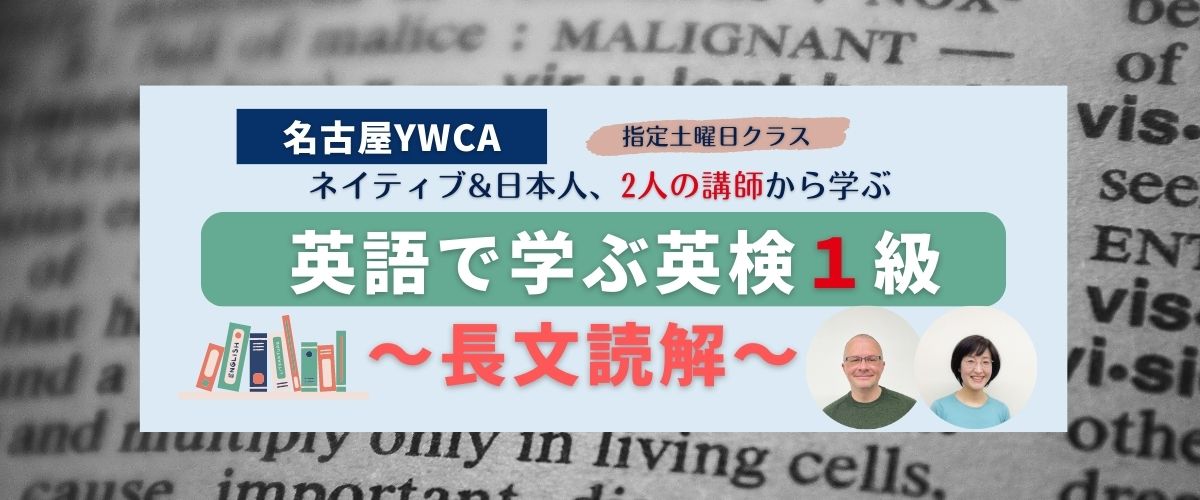 5月から英検1級対策の長文読解に特化した少人数対策クラスをスタートします!英検1級長文をネイティブと日本人講師から学ぶクラスは名古屋YWCA英会話ならではの講座です。開講まであと若干名募集中です。