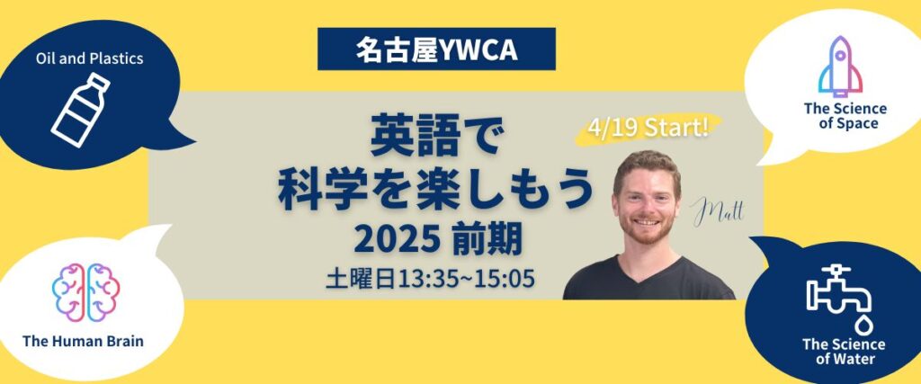 人気のクラス、マット先生の「英語で科学を楽しもう」の2025年度前期開講スケジュールが決まりました。マット先生がピックアップしたテーマについて、用語集やテキスト、ビデオを使って分かりやすく解説します。
