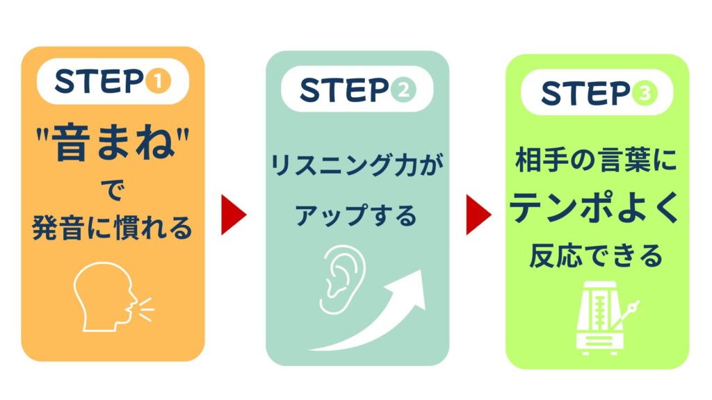 このステップで、リスニング力と発音をしっかりとブラッシュアップしていきます。
