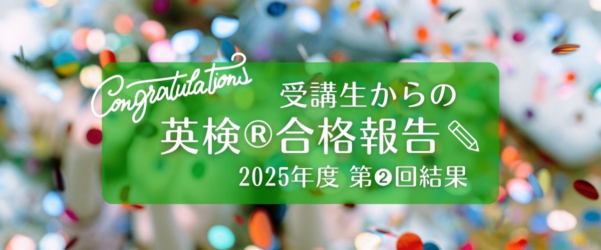 英検®レギュラークラス及び短期講座やプライベートレッスンを開講・実施しています。今回は2025年度第1回の英検®1級、新設の準2級プラスに合格された受講生3名に報告をいただきました。それぞれレギュラークラスやプライベート…