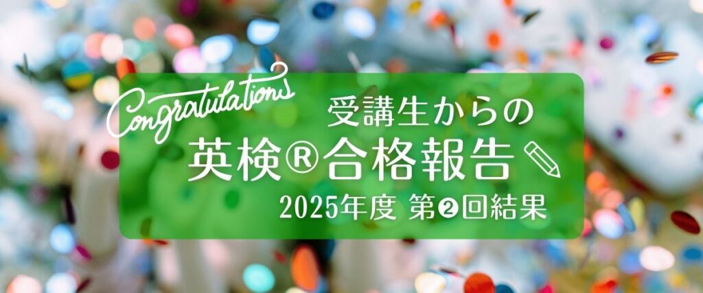 名古屋YWCA英会話では、英検®レギュラークラスやプライベートレッスンを開講・実施しています。今回は、2025年度第2回の英検®1級・準1級・2級・準2級に合格された受講生6名に報告をいただきました。それぞれレギュラークラスやプライベートレッスンで強みを伸ばして弱点を克服し、見事合格されました。みなさん、当英会話クラスで学んだ内容を活かしつつ、ご自身でも努力した結果、合格をつかみ取っていらっしゃいます。おめでとうございます!